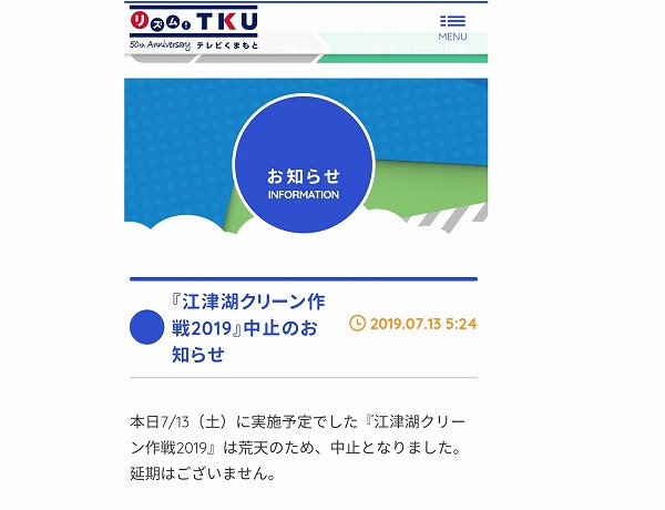 今回、テレビ熊本(TKU)さんが主催の「江津湖クリーン作戦2019」に参加しようと準備を進めていました。
