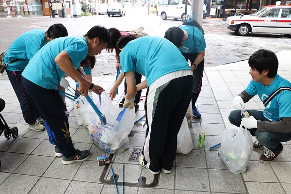 雨の中、集まって熊本の中心街「下通り」をお掃除してきました!