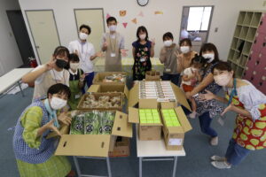 今回は食事提供ではなく、おやつと物資の配布を行いました。