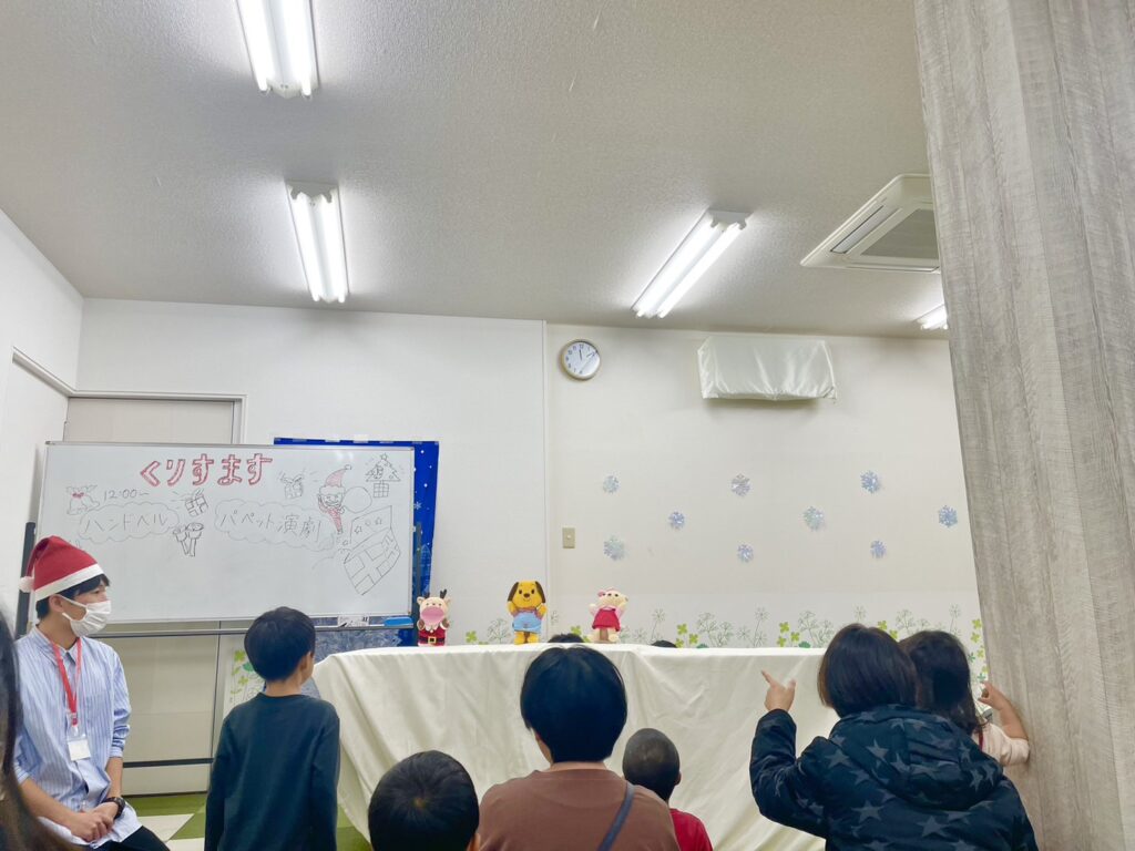 3階ではクリスマスにぴったりな、パペットを使ったクリスマスメッセージとハンドベル🎶が特別に披露されました✨