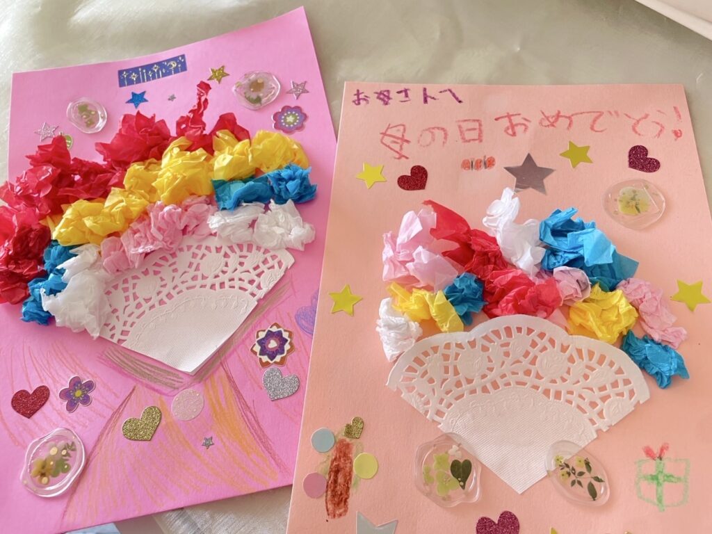 子どもたちが個性輝く作品を完成させ、「お母さんありがとう」と感謝を伝えながら渡している姿が素敵でした!💞