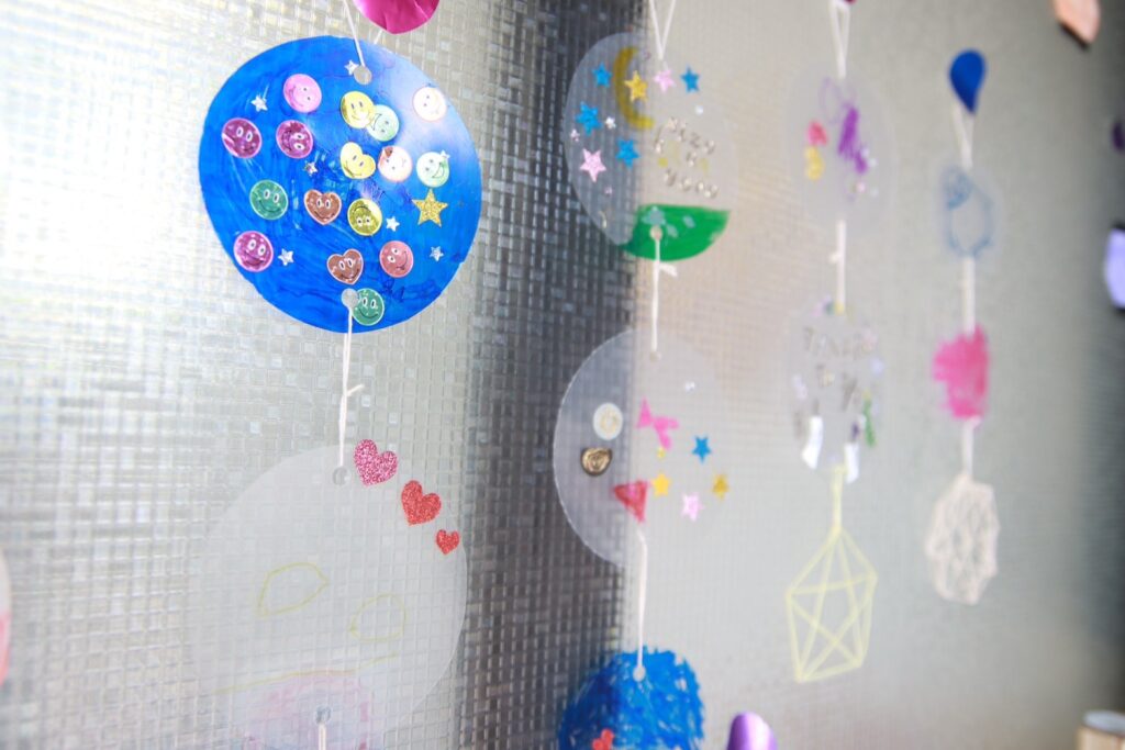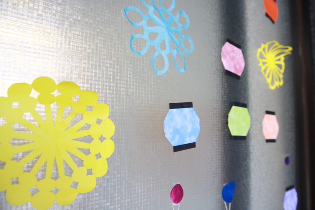 前回の七夕ワークショップで子どもたちに作ってもらった素敵な作品も入り口に飾りました💕